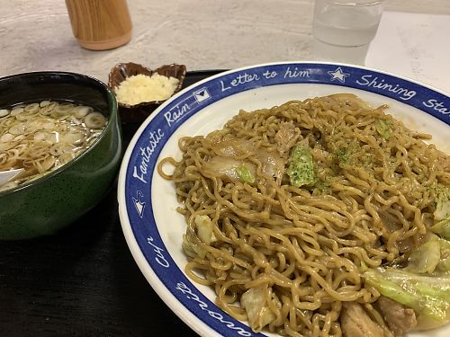●つけ焼きそば(大盛) ドライブイン西十和田(黒石市) つけ麺と同じ要領で焼きそばをつけ汁につけて食べます。 そのままソース焼きそばとしても食べられます。 つけ汁を使うとソース焼きそばの味はなくなって無味??(^^; 2020.8.9 \830 8点 |