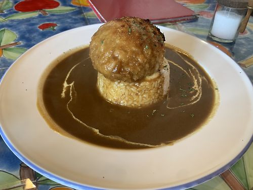 | ●アランドロンカレー 美味小屋 蛮(むつ市) ごはんと同じ大きさのハンバーグが乗っています。 ハンバーグの中には、とろけるチーズが。 少しライスが少ないかな。命名の根拠はよくわかりません(^^; 2020.8.10 \1,200 9点 |