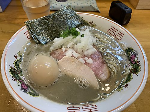![]() ●濃厚煮干そば + 味玉 謝(いやび)(藤崎町) 味玉のトッピングとろっとした煮干スープに刻みタマネギの相性はいいですね。 硬めの細麺も良かったです。 2021.8.14 \950 9点 |