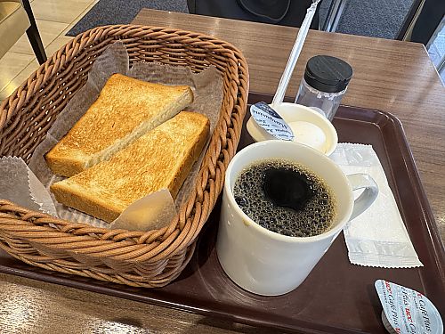 ![]() ●トースト + モーニングコーヒー ヤマザキプラザ市川(市川市) ヤマザキパンの本部?のお店です。 トースト(ゆでたまご付)200円とモーニングコーヒー100円。 合計300円です! 大阪でも300円のモーニングは、滅多にありません。 堺のフォルテ倶楽部級ですね コスパという意味で9点♪ 2025.8.15 \300 9点 |