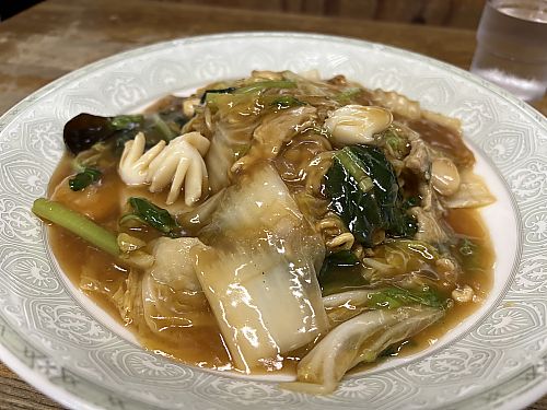 ![]() ●五目あんかけ焼きそば 中華広州屋台(ニセコ町) 大皿で一瞬ひるんだけど、ちょうど良いボリューム。 やさしいお味付のあんかけ焼きそばでした。 2022.8.11 \1,100 9点 |