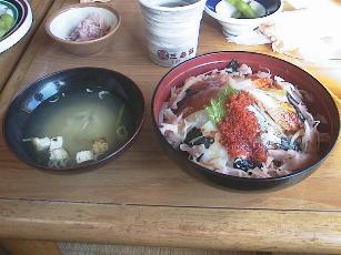 ●生ちらし 三春(白老町) これは超おすすめ。めちゃ安いし美味いですよ〜 他に天丼(大エビ天5本盛り@\700)もかなり 惹かれました。 2001.11.7 \700 |