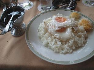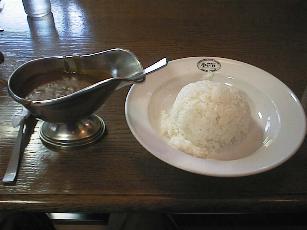 ●特製ブラックカレー 丸駒温泉(千歳市) 真っ黒なカレーです。 目玉焼きが2つあるのは嫌いな人から もらったからです(笑) 2001.11.6 \1,000 |
