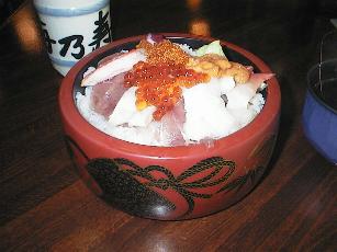●生うに、いくら合わせ丼 ながもり食堂(札幌市) ごちそうになっちゃいました。 自腹じゃとても手がでないです(^-^; 2001.7.25 \3,000 |