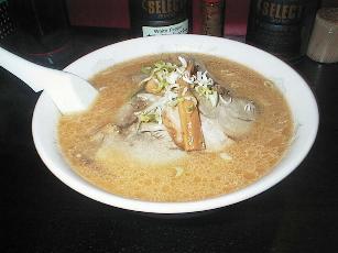 ●羊蹄らーめん 道の駅「望羊中山」(札幌市) チーズとガーリックが入った塩?しょうゆ?らーめん そんなに違和感はなかったですねから 2002.11.30 \880 |