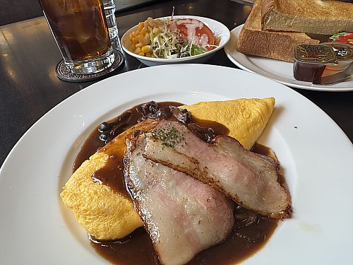 ![]() ●オムレツのモーニング ルーブル(つくば市) とてもきれいなビジュアルのオムレツで立派なベーコンが2枚。 きのこソースが添えられ、トロトロ具合が見事なオムレツでした♪ パンにバターとジャムに加えてメープルシロップもあったのが珍しくそして好感を持ちました。 立派なモーニングをいただけて大変満足です。 2026.1.17 \1,100 9点 |