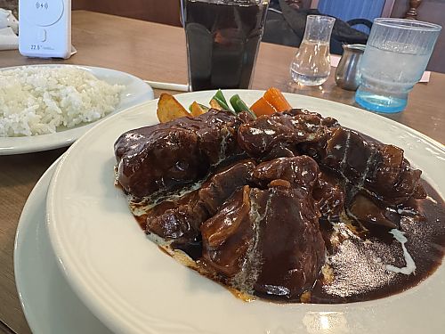 ![]() ●ビーフシチュー・ライス ウエスト本店(湯河原町) ビジュアルいいですよね 一般にビーフシチュー頼むと大きめの肉塊が1?2個あるイメージですが、 ここのは文字通りゴロゴロ 食べ進めるとビジュアル以上のボリュームでがっつり食べた感満載になりました。 コクのあるきちんと作られたビーフシチューです。 お肉は程よくホロホロで脂身の程度もちょうどいい。 非常に満足度高いです。 唯一言わせていただけるのであれば、パンが選べないこと せっかくのビーフシチューがもったいないな 2026.1.18 \2,350 9点 |