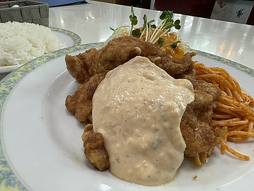![]() ●おぐらのチキン南蛮 おぐら本店 瀬頭店(宮崎市) 元祖チキン南蛮の店というかタルタルソースを初めて採用したお店のようです♪ 店内は昭和のファミレスというか、どこかレトロな家庭的な雰囲気 タルタルソースは多分採用当時のままと思うけど、 いわゆるチキン南蛮のタルタルと全然違いました。 ボリューム的にはちょうど良かったです。 2024.7.21 8点 \1,300 8点 |