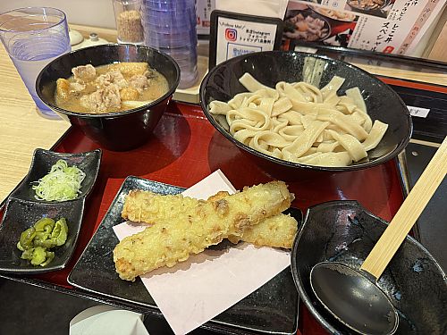 ![]() ●肉汁つけうどん(熱もり) 武蔵野うどん専門店肉汁饂飩屋とこ井(さいたま副都心) 中盛+肉増しにしています。 つけ汁は魚介と豚のブレンドのようでやや甘めの濃いお味。 具材は豚肉と油揚げとネギ うどんの太さが不揃いで一般のうどんよりはるかに太かったです。 途中、味変でラー油を加えました。見事私好みのつけ汁になりました! チェーン店のようですが、割と印象いいです。 2025.10.05 \880 +\150 +\320 9点 |