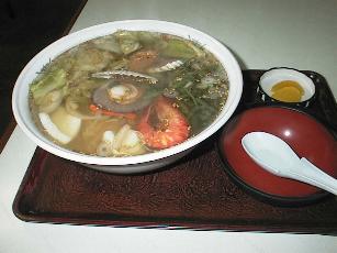 ●そんぴんラーメン そば処 くるま屋(米沢市) ホントはまんぎりらーめん(米沢牛のらーめん)を 食べたかったんだけど売り切れ・・・ でもえらく豪華な海鮮らーめん。 味噌を溶きながらお味をお好みに 2002.6.15 \950 |